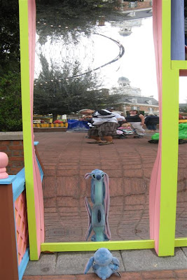After that, I went over to FW. On the way to UoE, I said that if TT was 10-min or less for SR, I'd ride it. It was, and I did -- didn't even have to watch the pre-show. There was an unoccupied middle-backseat, so Stitch jumped in and buckled up. There was a light rain by the time our car made it outside -- not as bad as front-seat Dueling Dragons with heavy rain, but still very fun. The cars were backing up at the loading dock, so there were some *sigh* "Cedric driving" moments in getting backed up. The ride pic with Stitch way down in his seat would've been SO CUTE, but unfortunately it didn't make it past the editor for some reason. Oh well.